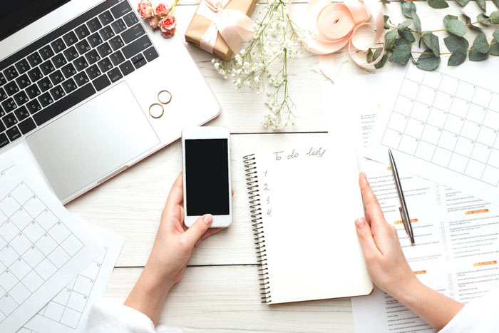 Zu Beginn der Hochzeitsplanung solltest Du alle Planungspunkte Deiner Hochzeit aufschreiben. Arbeite am besten mit einer Checkliste zur Hochzeitsplanung, damit keine relevanten Organisations-Punkte vergessen werden.